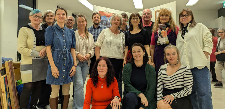 „Jetzt war es soweit. Ich habe das erste Mal meine Bilder ausgestellt. Einige Exponate hatten schon einen jahrzehntelangen Dornröschenschlaf hinter sich, archiviert in Schachteln oder gestapelt im Keller. Und jetzt durften sie an die Öffentlichkeit! Es war eine interessante Erfahrung. Das Interesse des Publikums war groß. Viel gerätselt wurde über die Technik von meiner blauen Linie“.